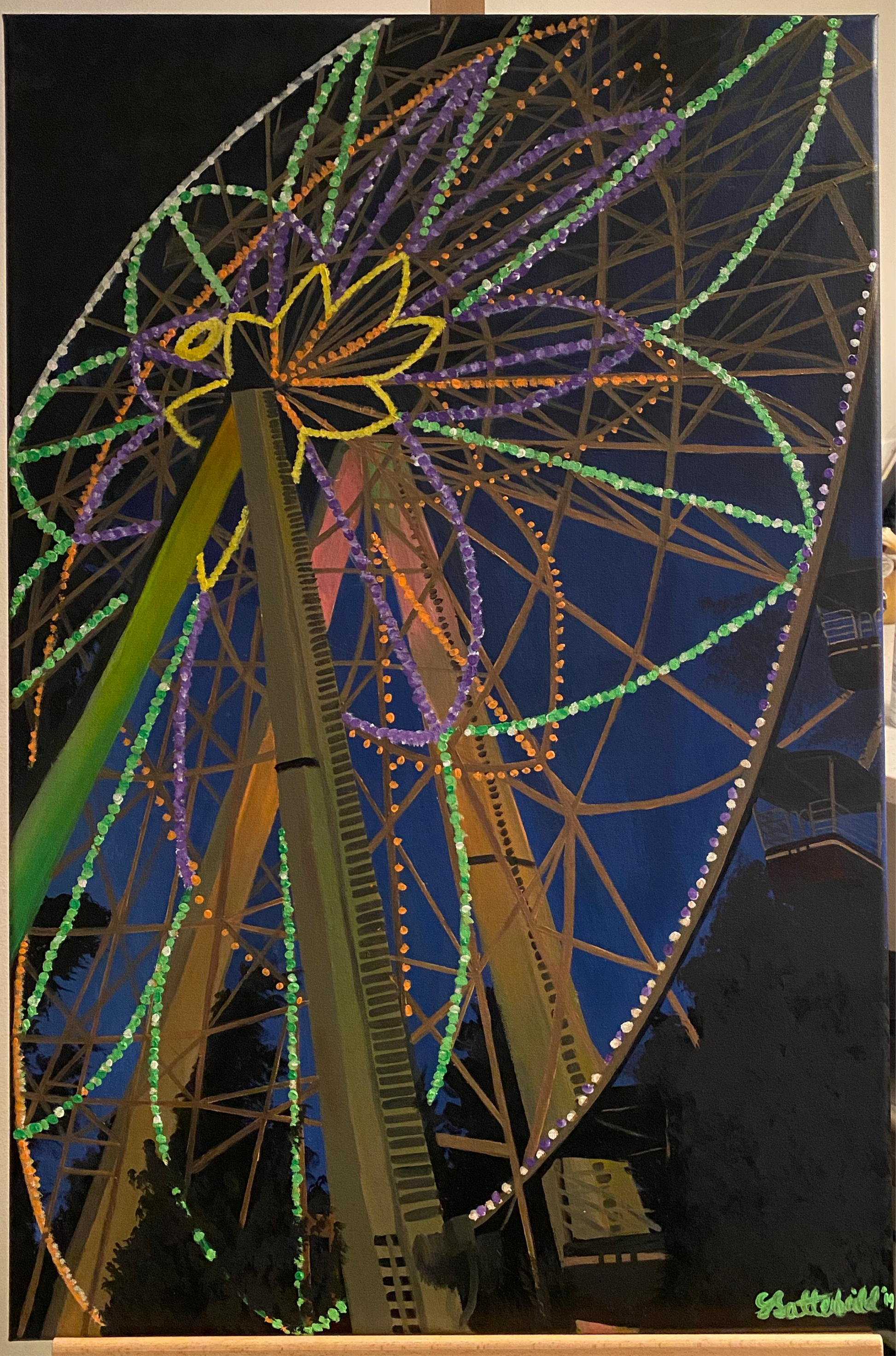 Ferris wheel at night. Hang as is or add a frame.